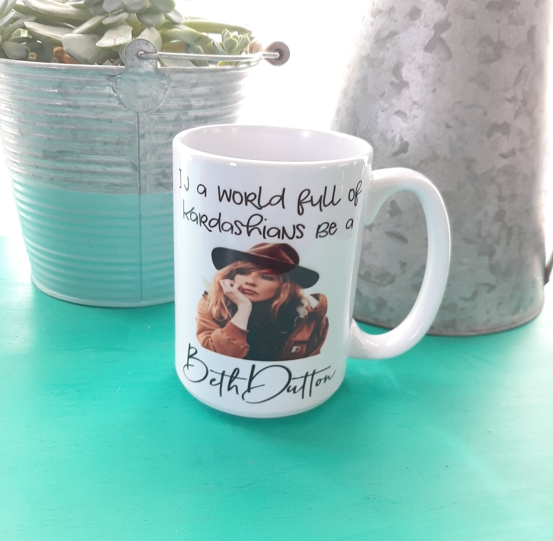 Our Beth Dutton design is available on 2 mugs: White or White w/black.