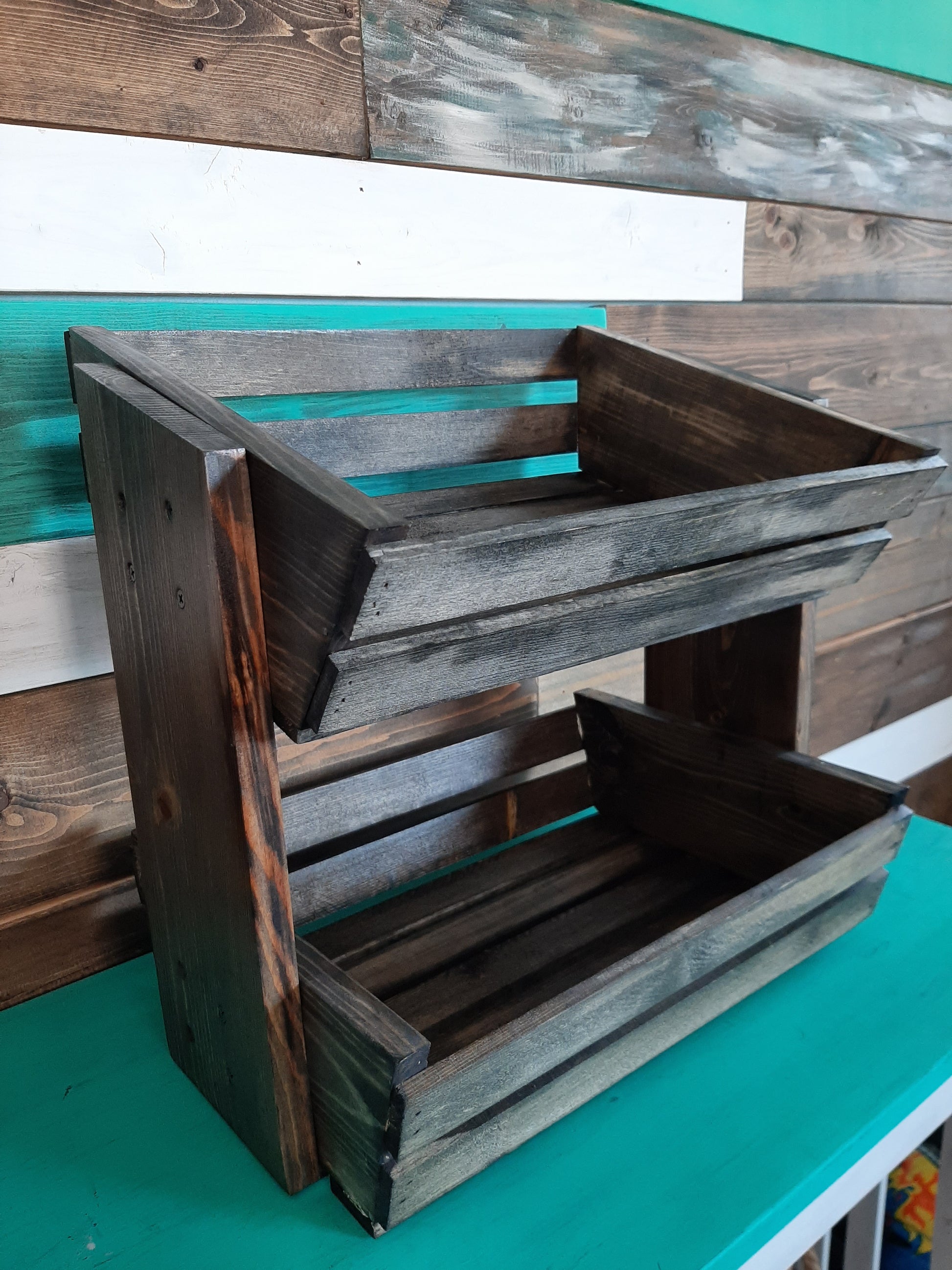 Our custom made to order Countertop Fruit/veggie stands are a great addition to your kitchen. We make them to fit your space and you can choose the finish.
