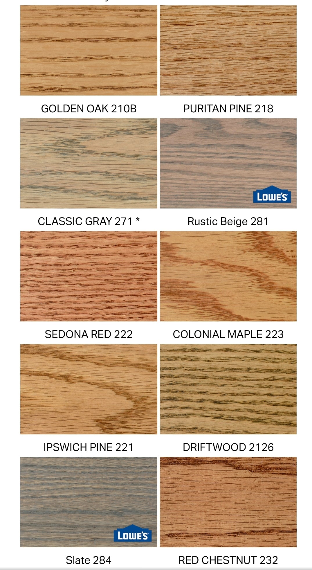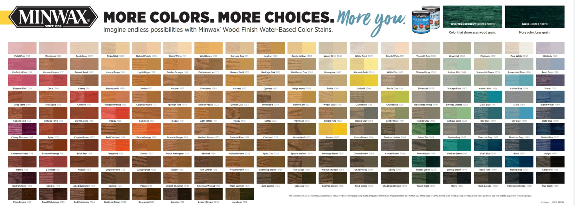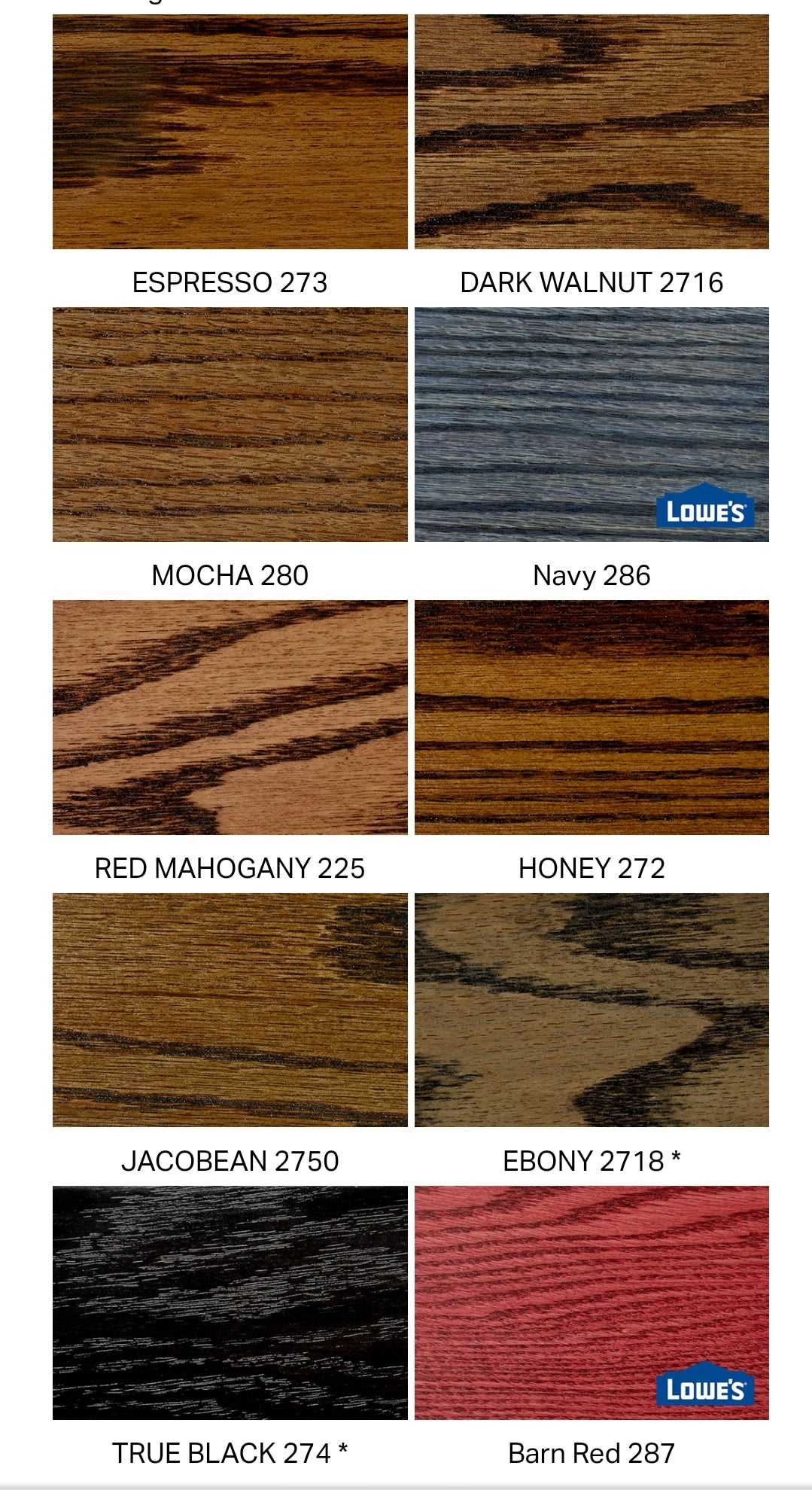 All color options can be viewed in the pictures. When placing your order please list your color option and measurements in the Notes To Seller Section. We will contact you to confirm your choices. Please note some stains are oil based and some are water based. The water based color options can be found on one picture. It also lists semi transparent or solid. Please include this in your options. We didn't want to limit the color options to a few choices, so we decided to offer them all.