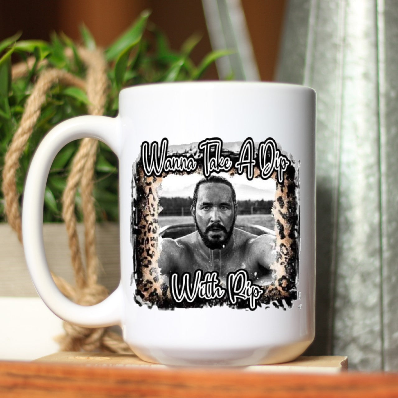 Our Dip with Rip design is available on 8 mugs: White, White w/teal, White w/yellow, White w/blue, White w/ green, White w/red, white w/pink, or White w/black.