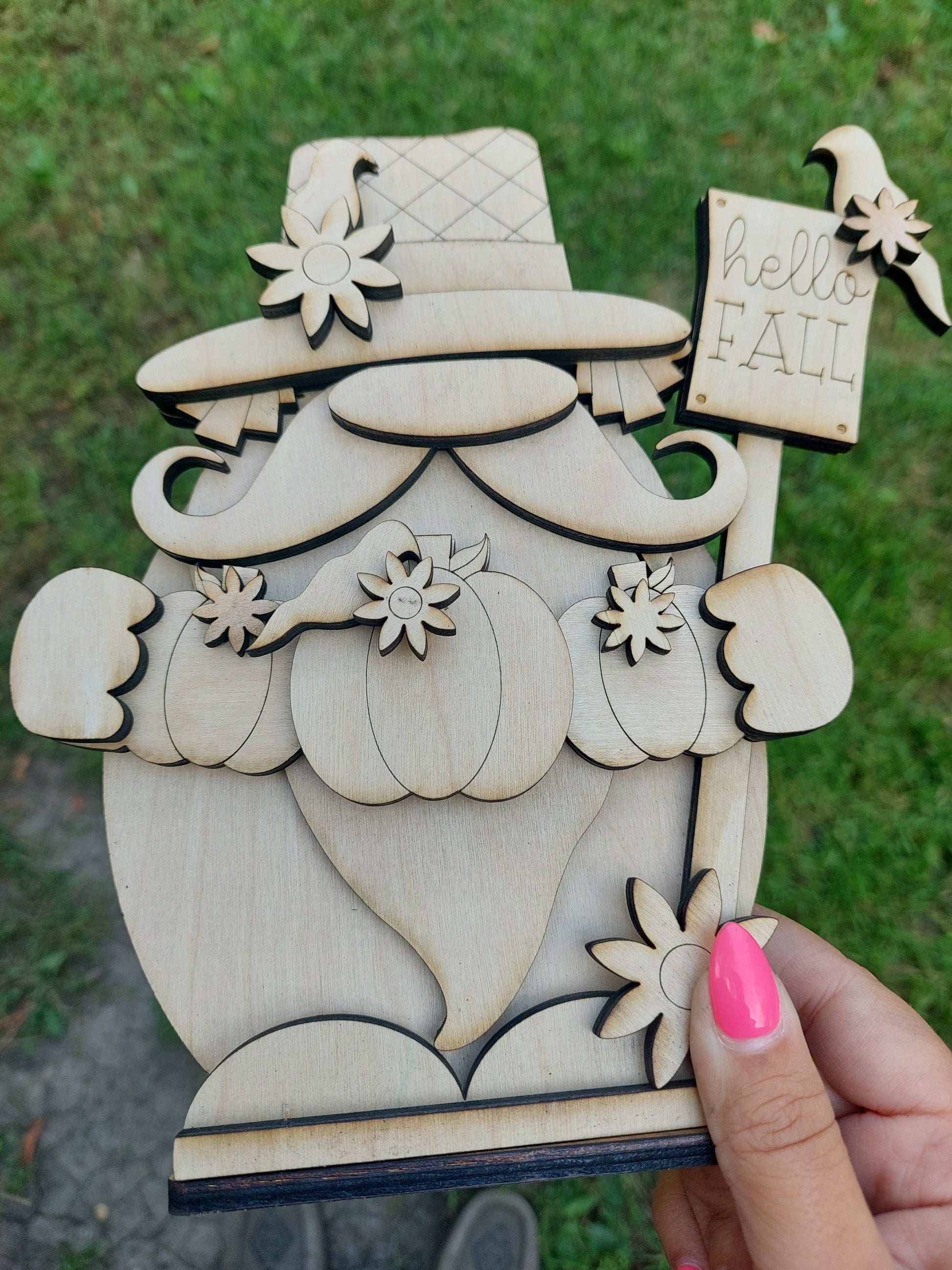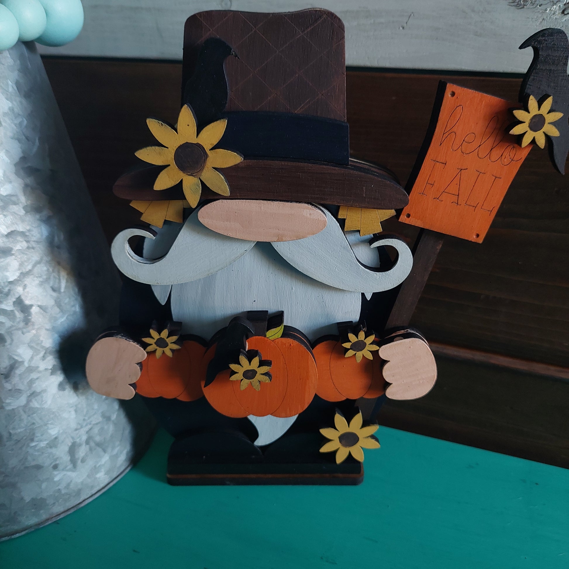 This cute Gnome measures 8.75" tall by 6" wide and is perfect the counter, mantle or shelf.
