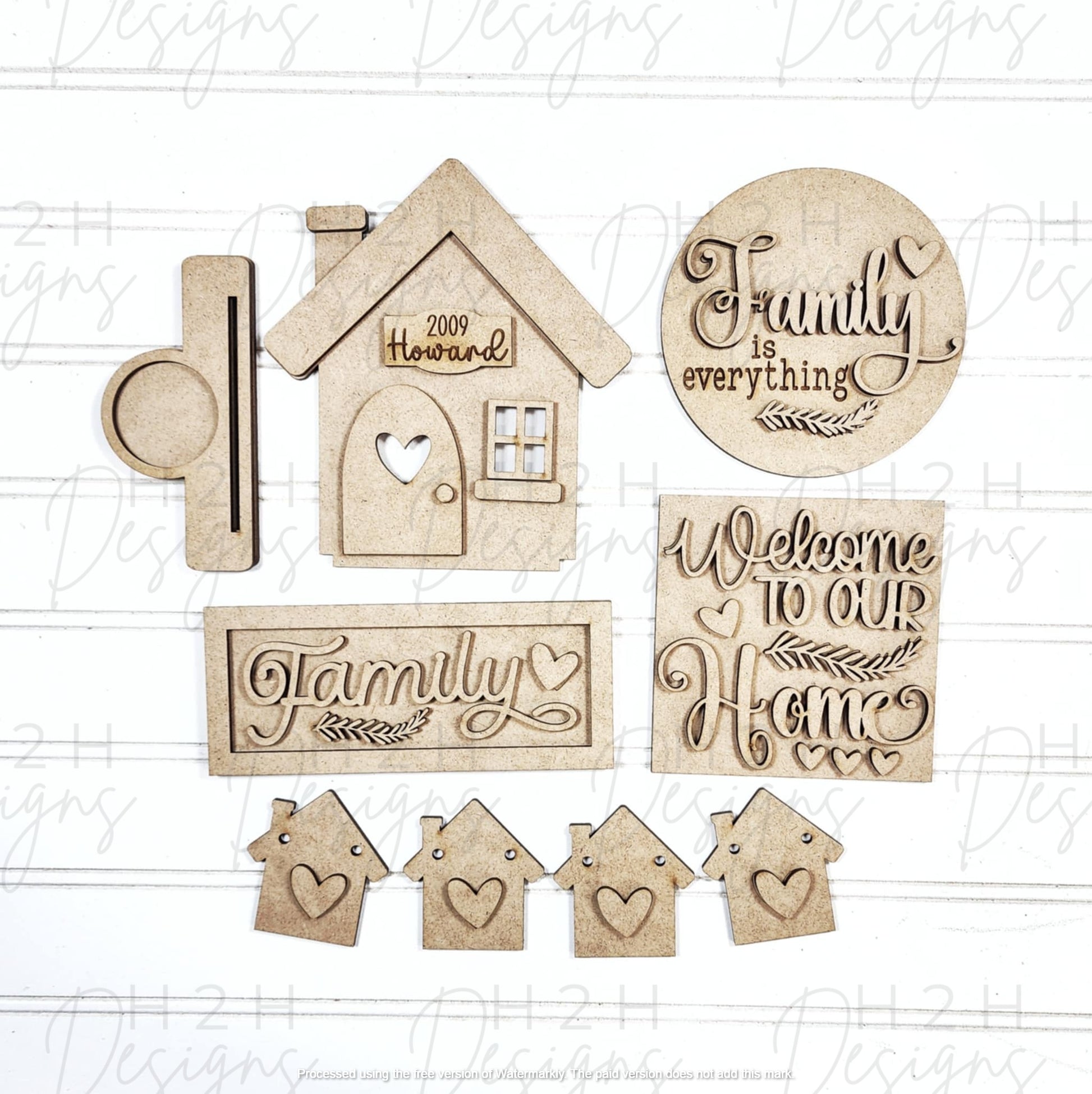 This beautiful Family Home decor set is the perfect kit for those with a tiered tray or one of our farmhouse Benches. Available in DIY Kit or Paint By Numbers Kit. Personalize the sign on the house with your family last name and the year. We will contact you to collect this information.
