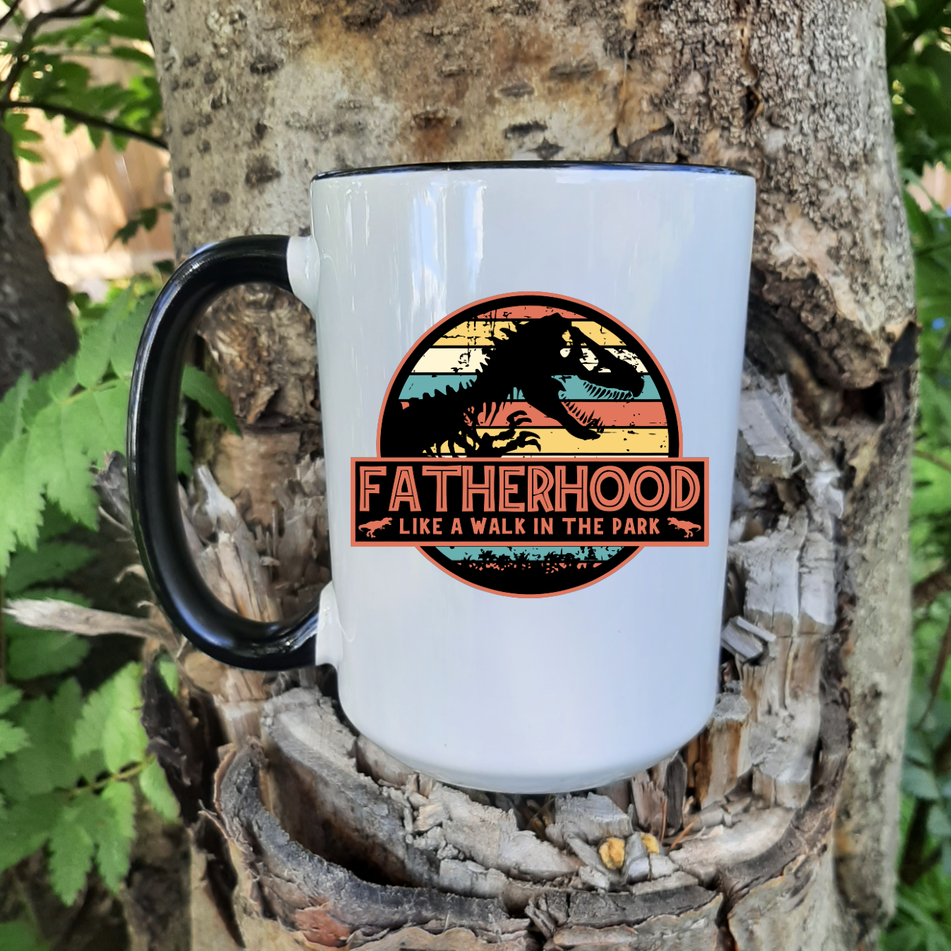 Our Fatherhood design is available on 7 mugs: White, White w/teal, White w/yellow, White w/blue, White w/ green, White w/red, or White w/black.