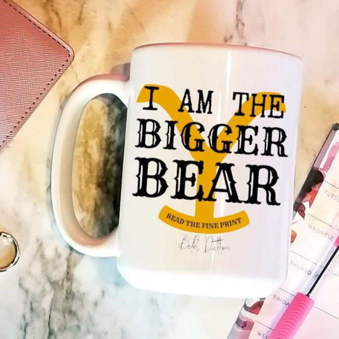 Our Bigger Bear design is available on 3 mugs: White, white w/yellow and White w/black.