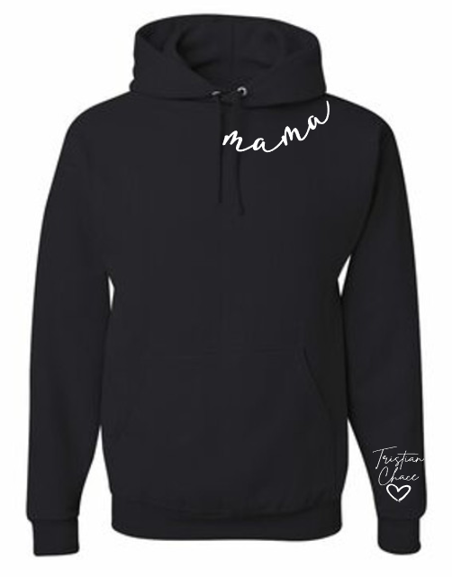 Wear your heart on your sleeve with our Mama sweater. Featuring mama up by the collar and your kiddos names on the sleeve by the cuff.