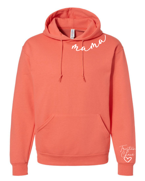 Wear your heart on your sleeve with our Mama sweater. Featuring mama up by the collar and your kiddos names on the sleeve by the cuff.