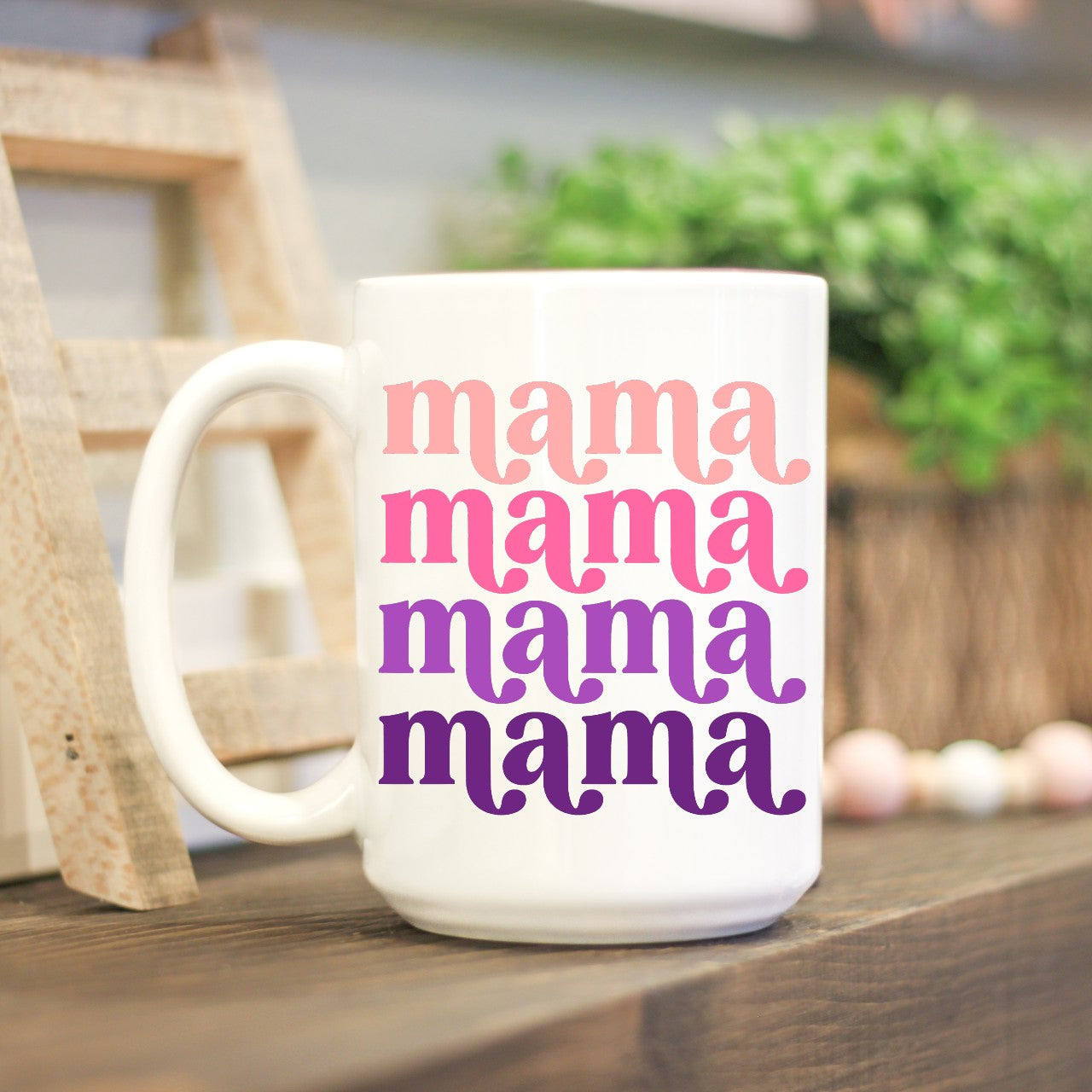 Our MAMA design is available on 3 mugs: White, White w/black, and White w/pink