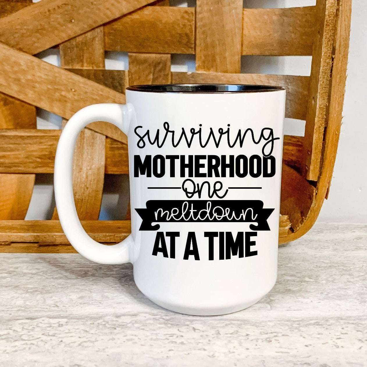Our MAMA design is available on 8 mugs: White, White w/black, White w/yellow, White w/green, White w/teal, White w/red, White w/blue, and White w/pink