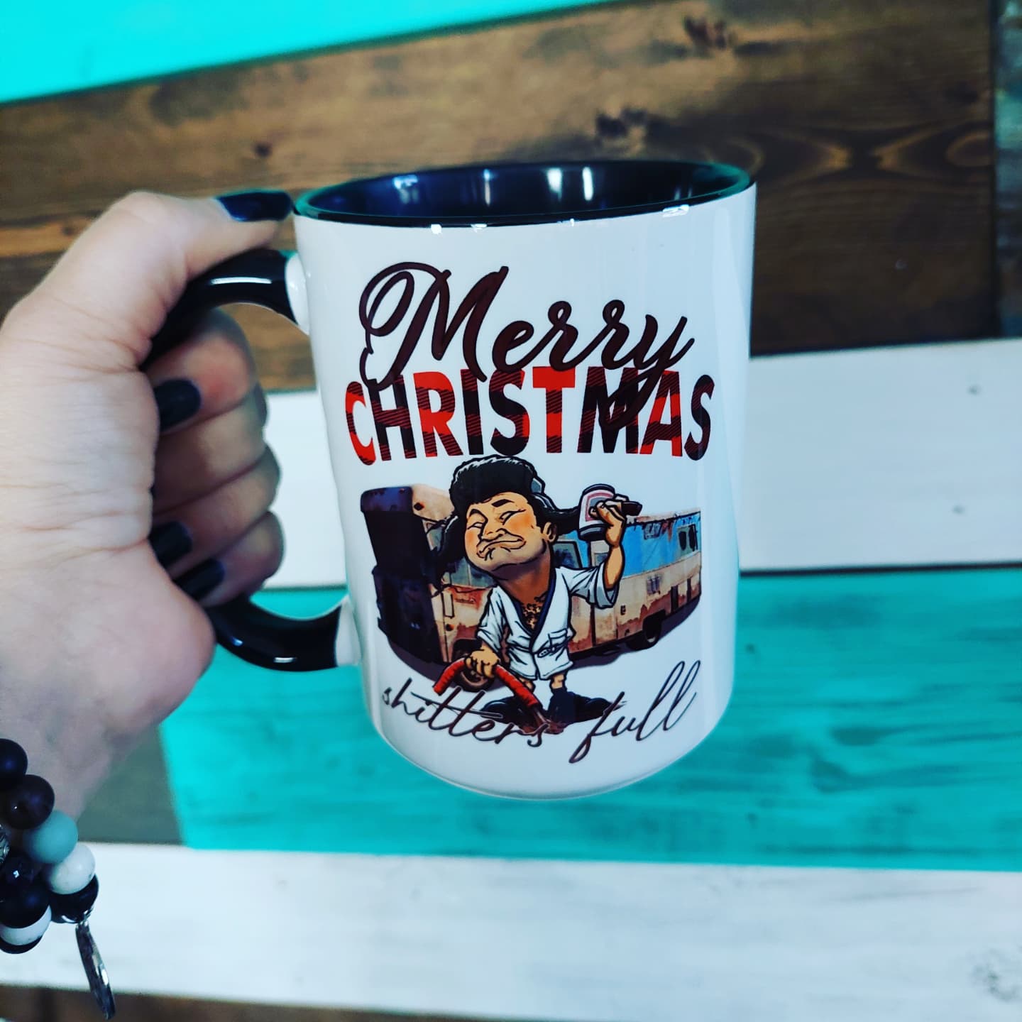 Our Shitters full design is available on 3 mugs: White, White w/red, or White w/black.