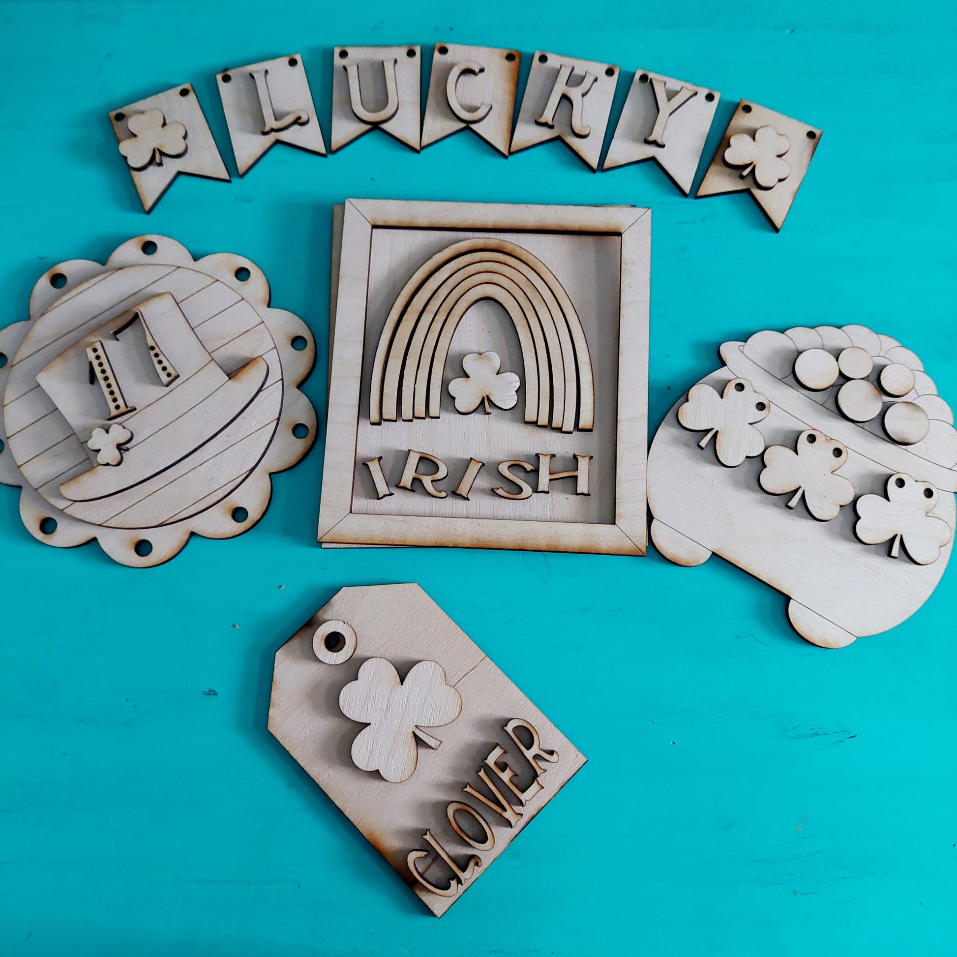 This St. Patrick's Day Decor Set is a fun diy wood craft to put together. It is great for parties, gifts, or just something for yourself. Available in a DIY Kit, Paint By Numbers Kit, or Blank Kits.