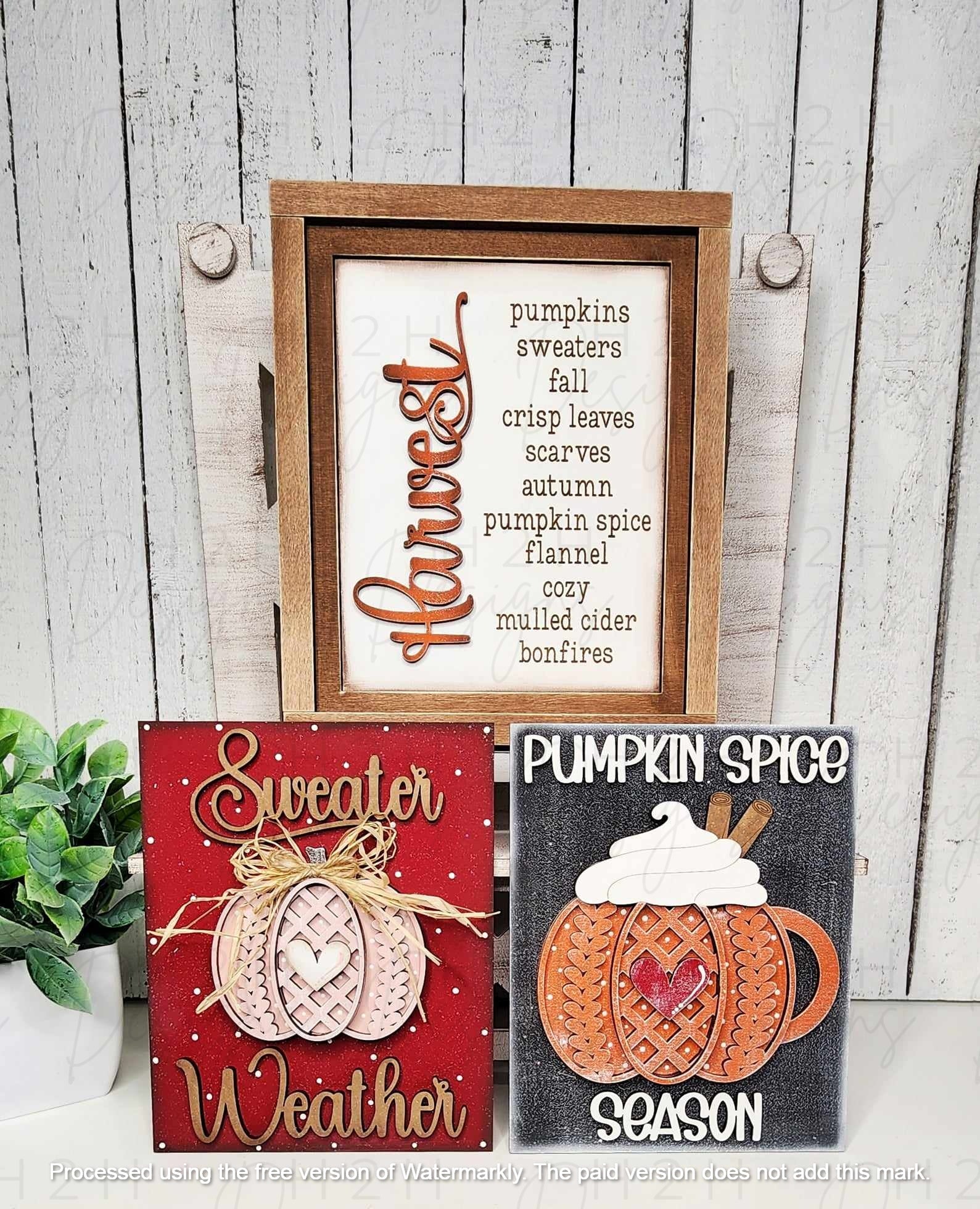 These Sweater Weather Trio Inserts are a fun diy wood craft to put together. It is great for parties, gifts, or just something for yourself. Available in a DIY Kit, Paint By Numbers Kit, or Blank kit. These fit into our Farmhouse Frame, Interchangeable Shutter Frame, and Farmhouse Double Frame.