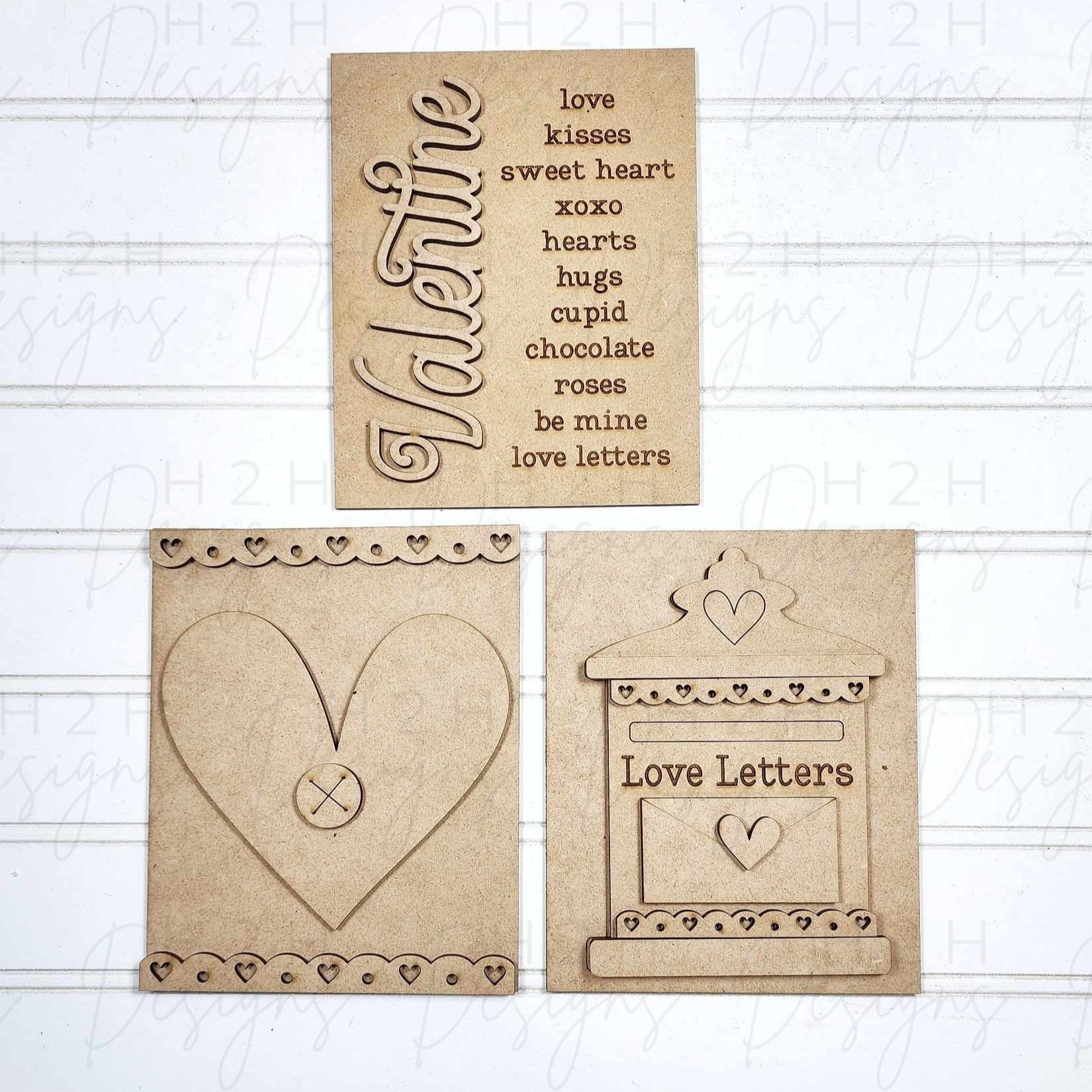 hese Valentine Trio Inserts are a fun diy wood craft to put together. It is great for parties, gifts, or just something for yourself. Available in a DIY Kit, Paint By Numbers Kit, or Blank kit. These fit into our Farmhouse Frame, Interchangeable Shutter Frame, and Farmhouse Double Frame.